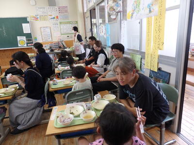 1年生は「給食試食会」も行われ、家族の方と楽しく会食をしました。