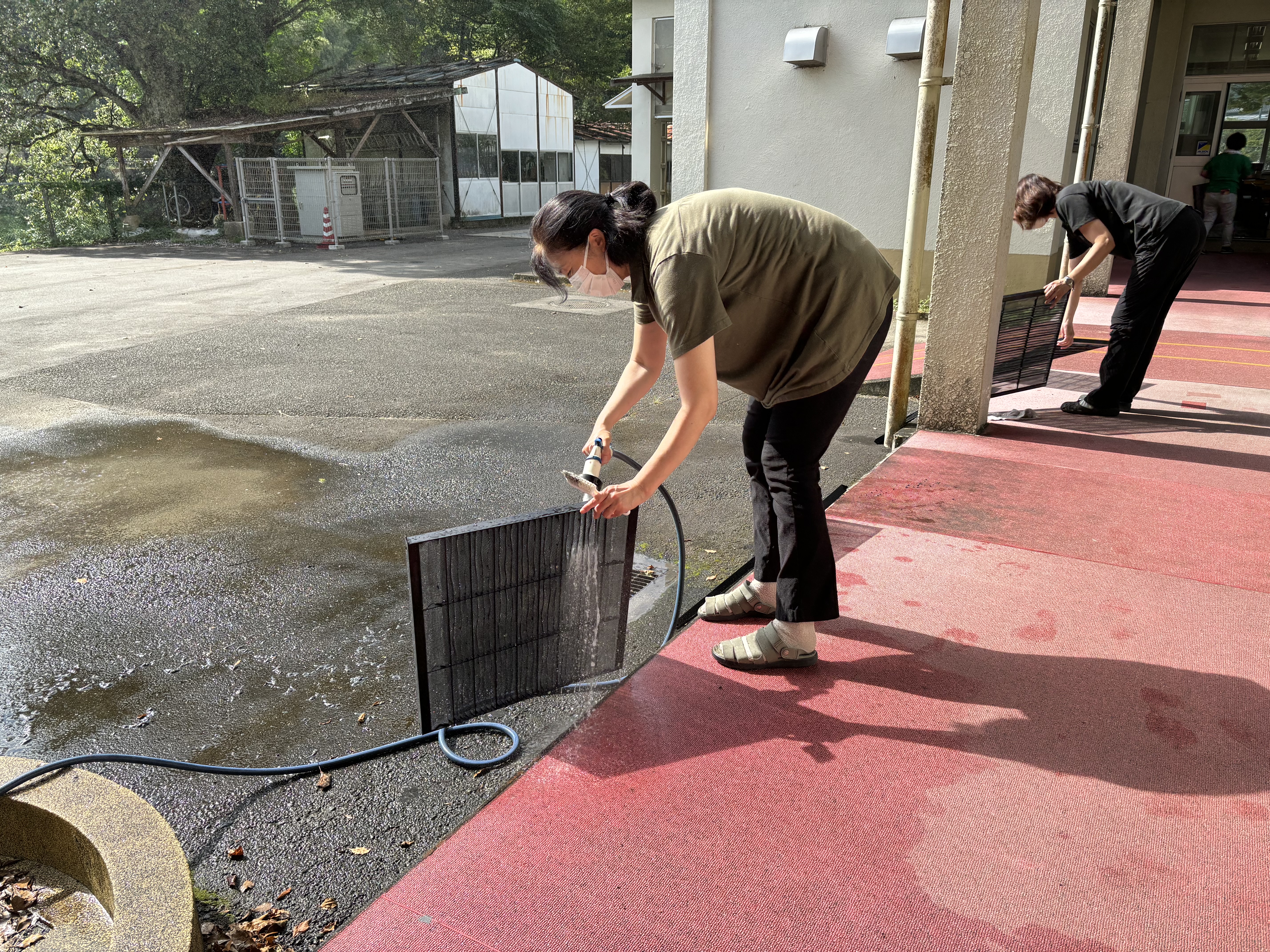 エアコンのフィルター掃除も行いました。2学期きれいな教室で子供たちを迎えます!(^^)!