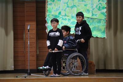 2年生は、青井神社や校区の美容室、人吉の図書館などたくさんのことをまとめた劇を発表しました。