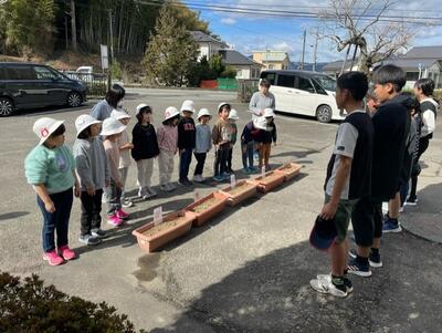 学校の花壇を春に花いっぱいにするために、花壇への花植えを行いました。環境委員会で育ててくれたパンジーやナデシコを植えました。寒い冬を越して、暖かくなったらきれいな花でいっぱいの学校になるといいですね。