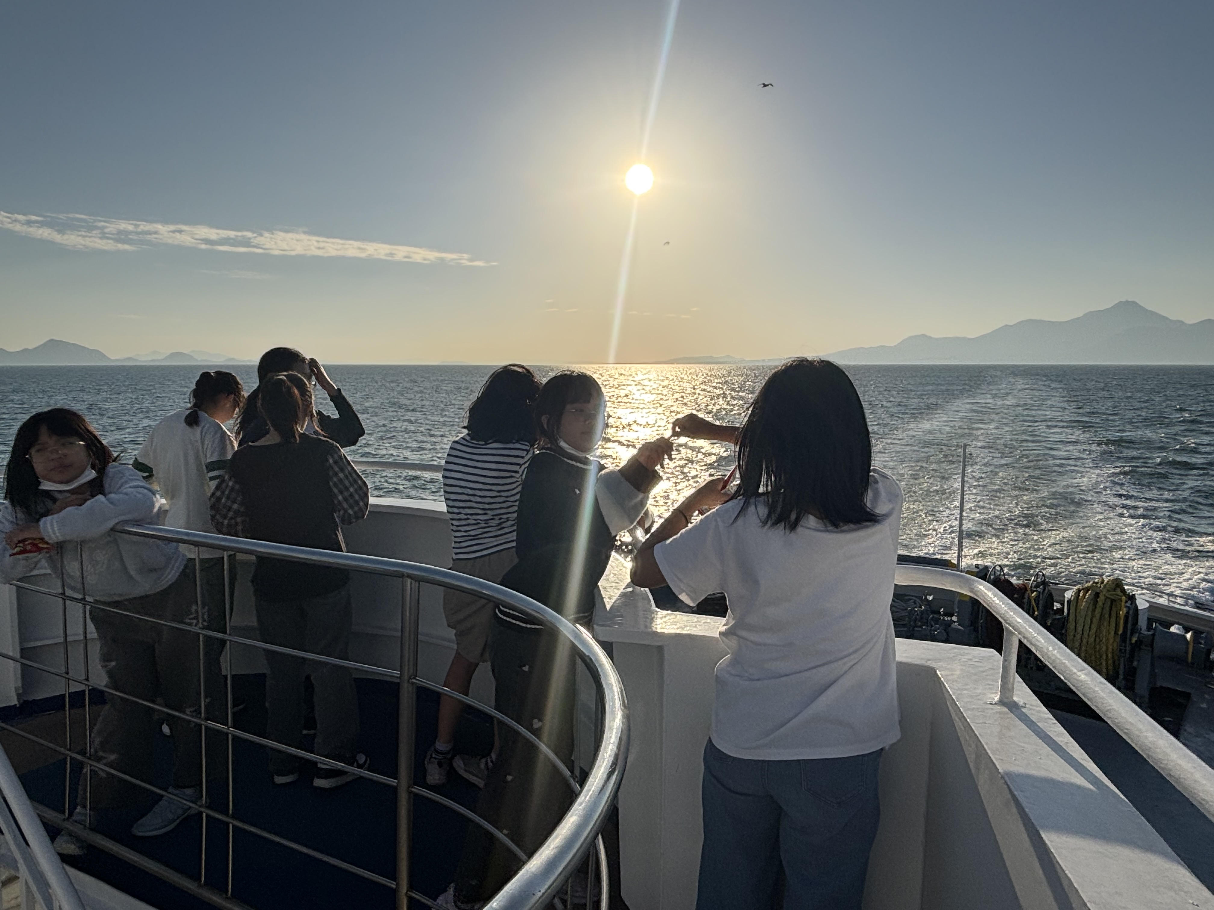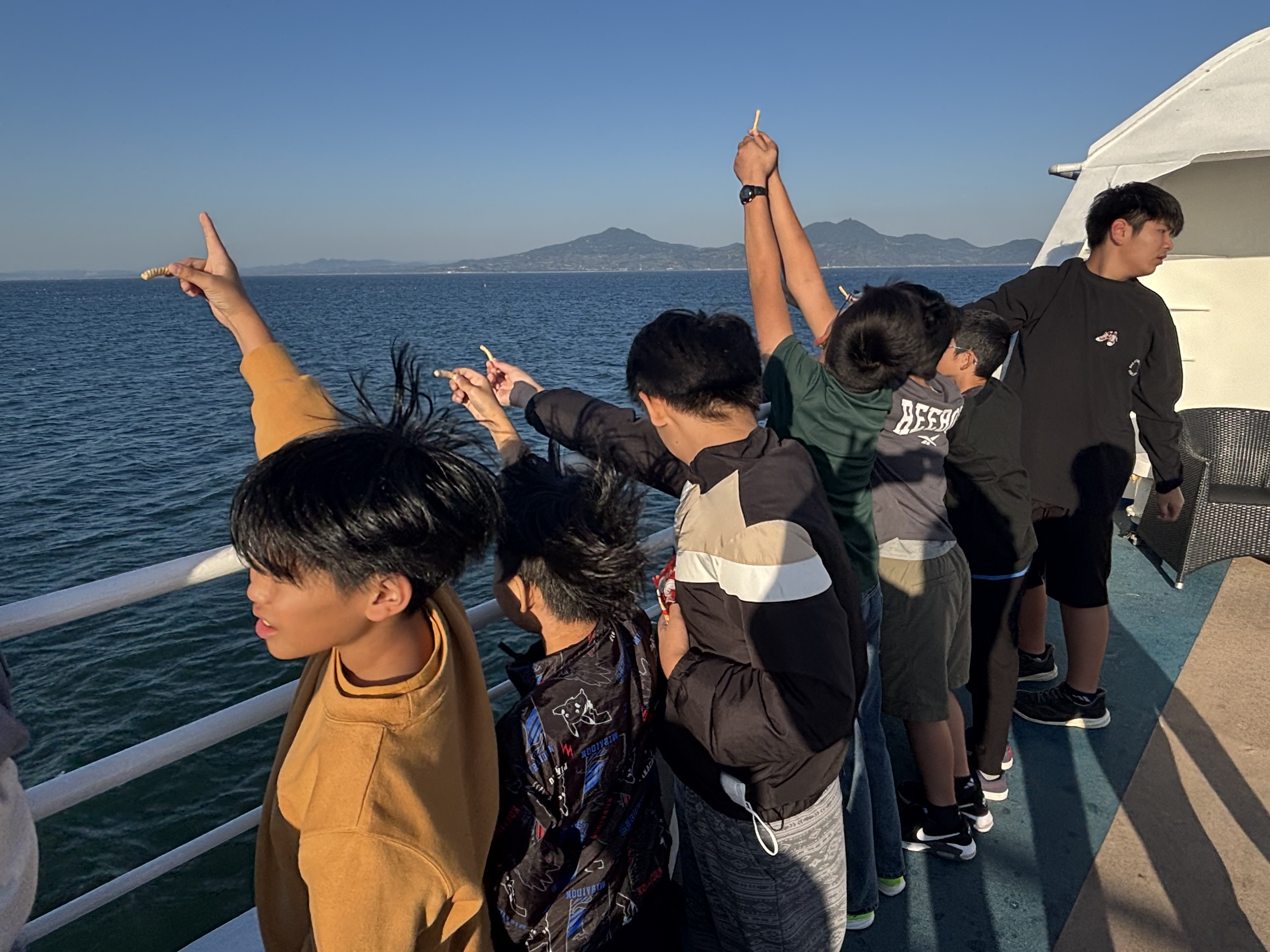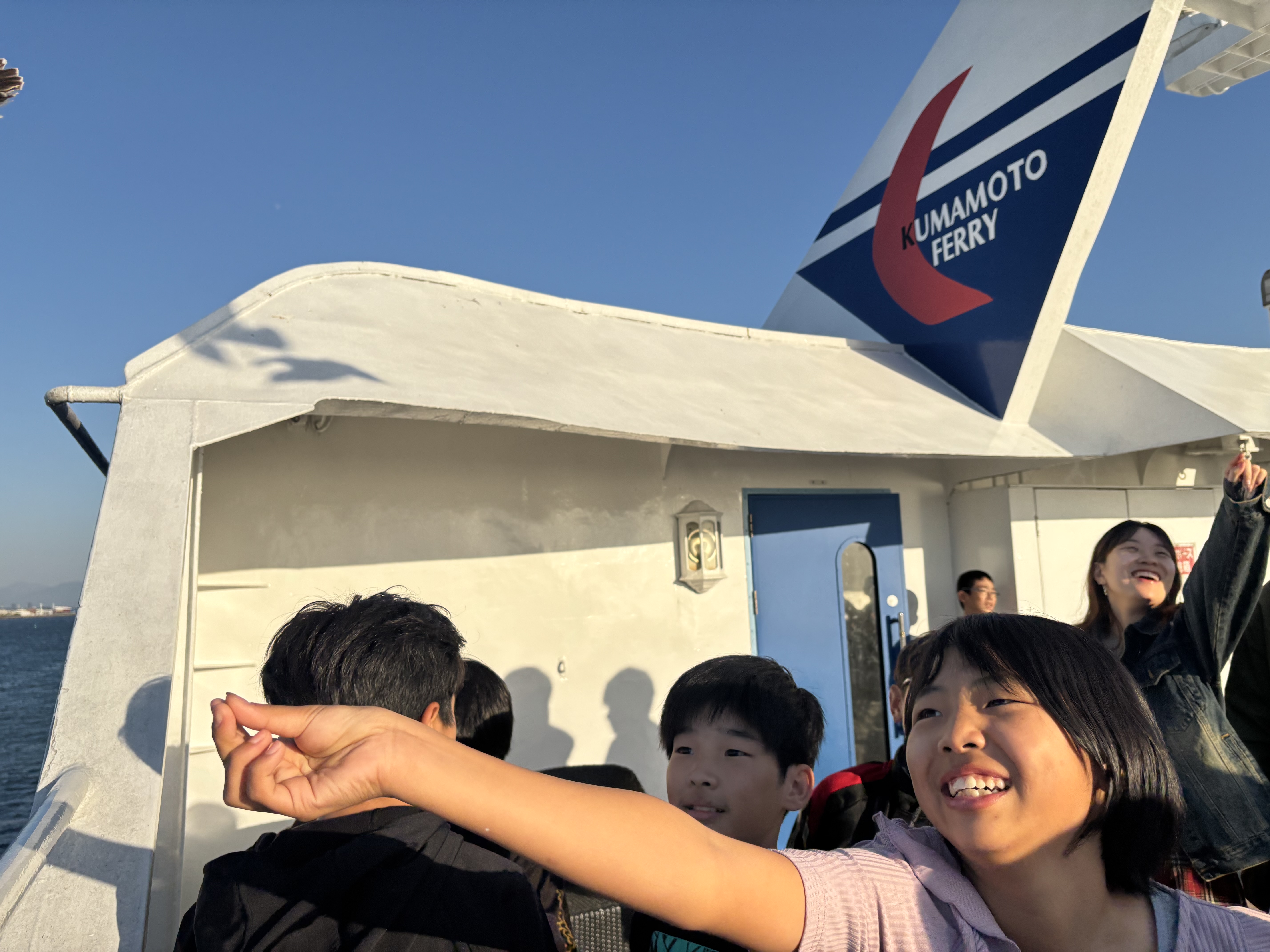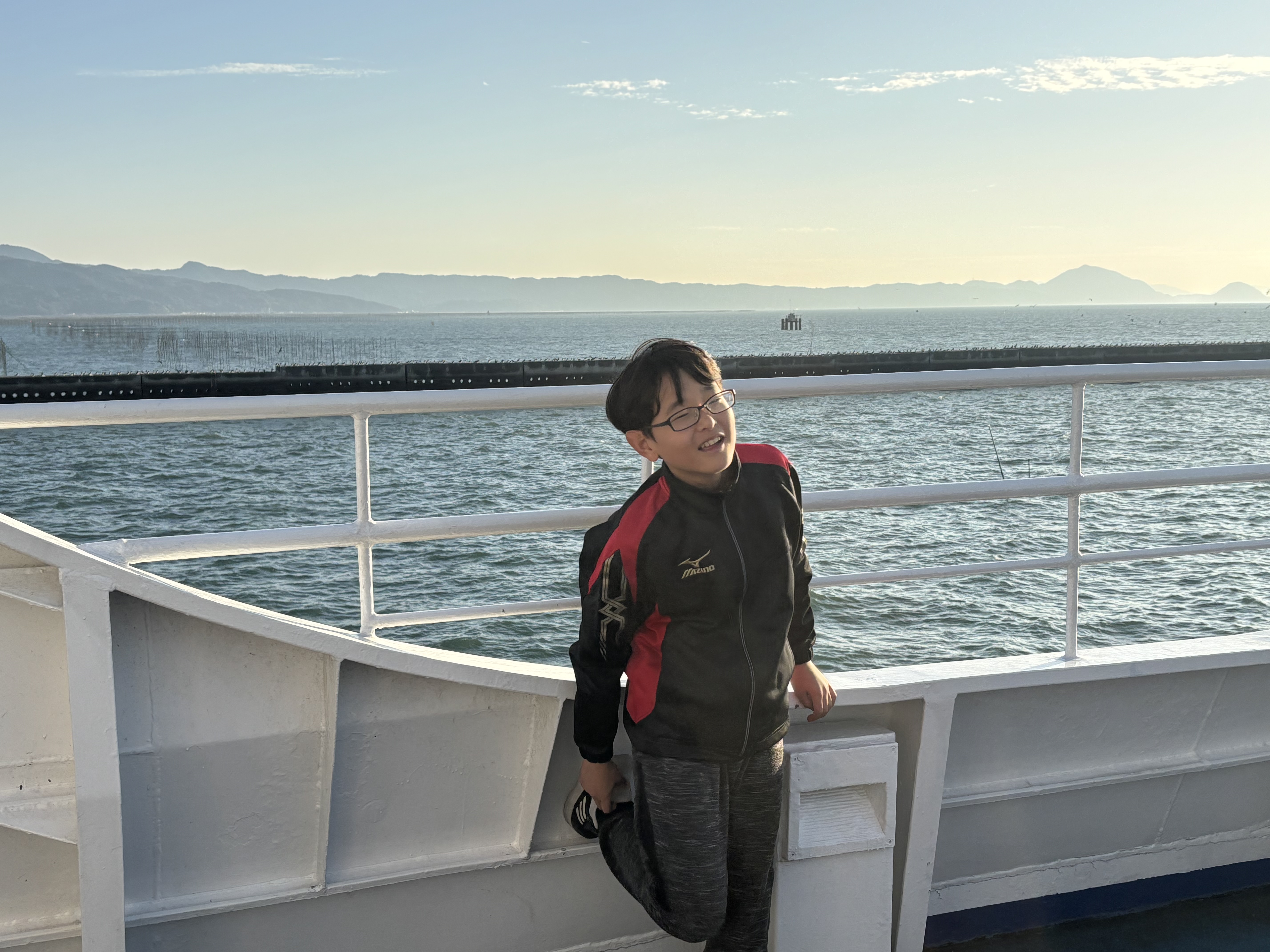 フェリー発乗船の子供達もいました。かもめへエサやり。なかなか近づいて来ないかもめたちでしたが、後からはかもめの襲来を受けるほどで、大喜び?の子供達でした。