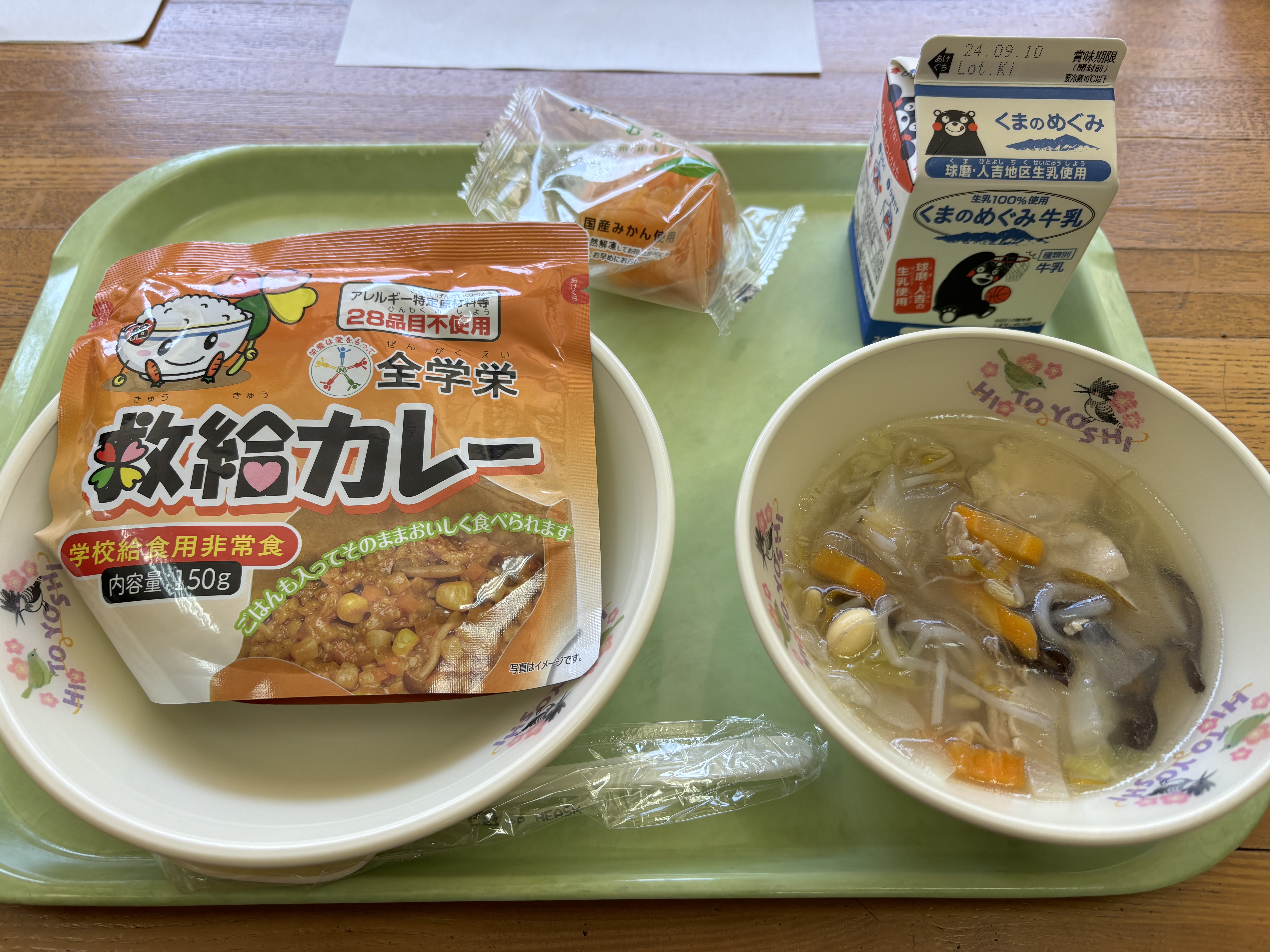ちなみに、本日の給食は「救給カレー」でした。ご家庭でも、防災のため