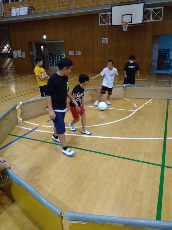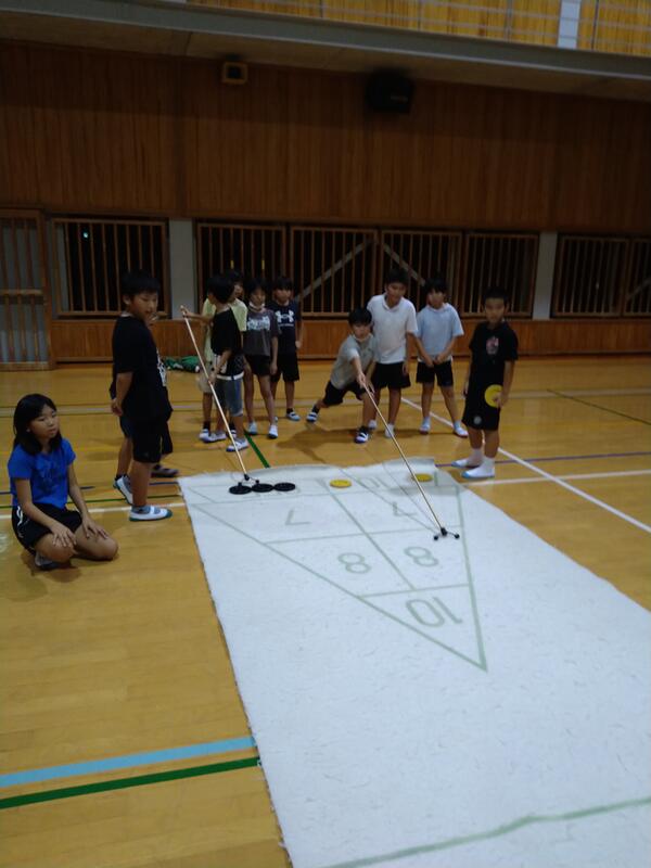 夕食後は、ニュースポーツ体験です。ガガとシャッフルボードを楽しんでいます。