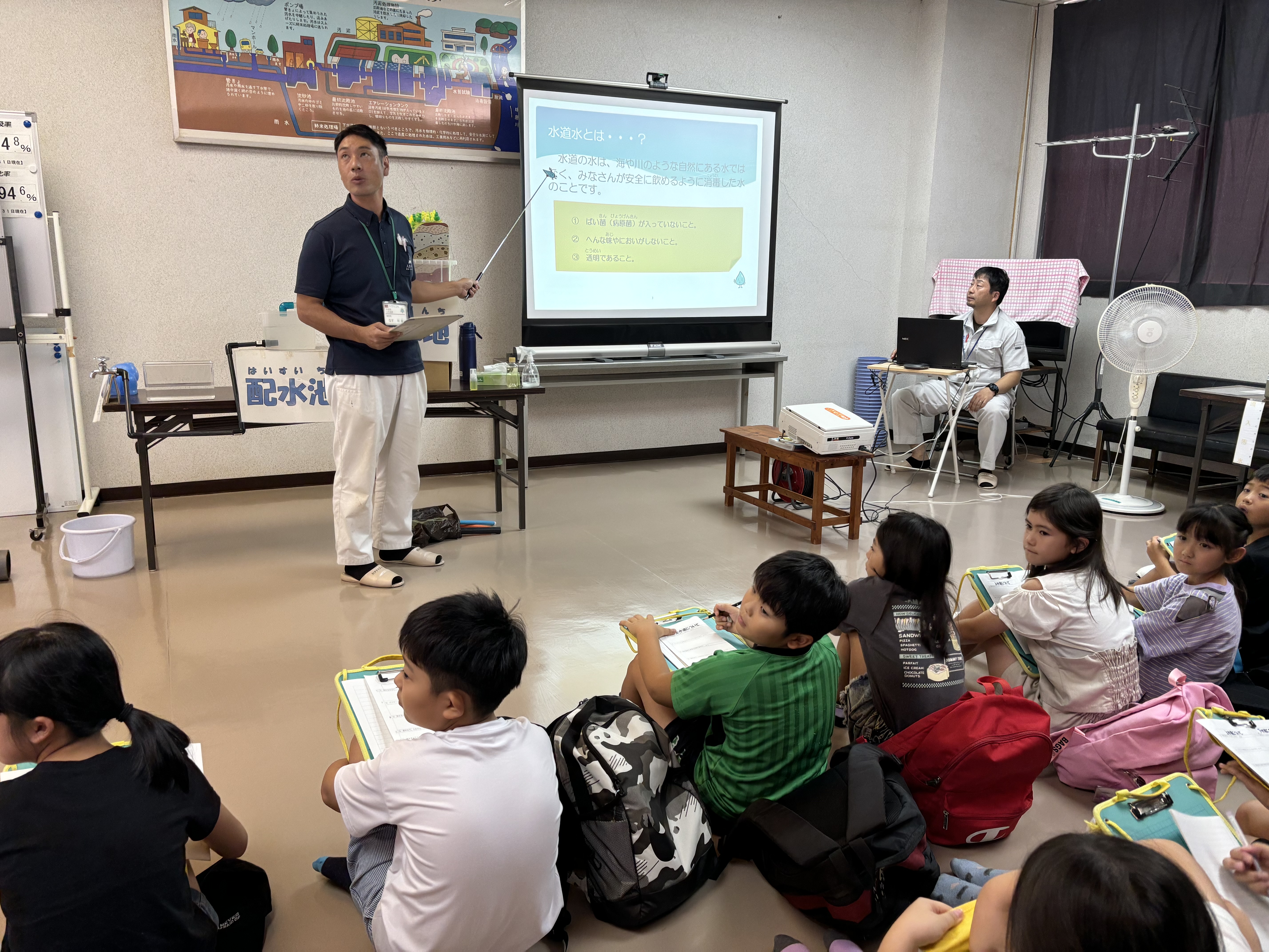 まずは、浄水苑で、家庭に届けられる水について教えてもらいます。