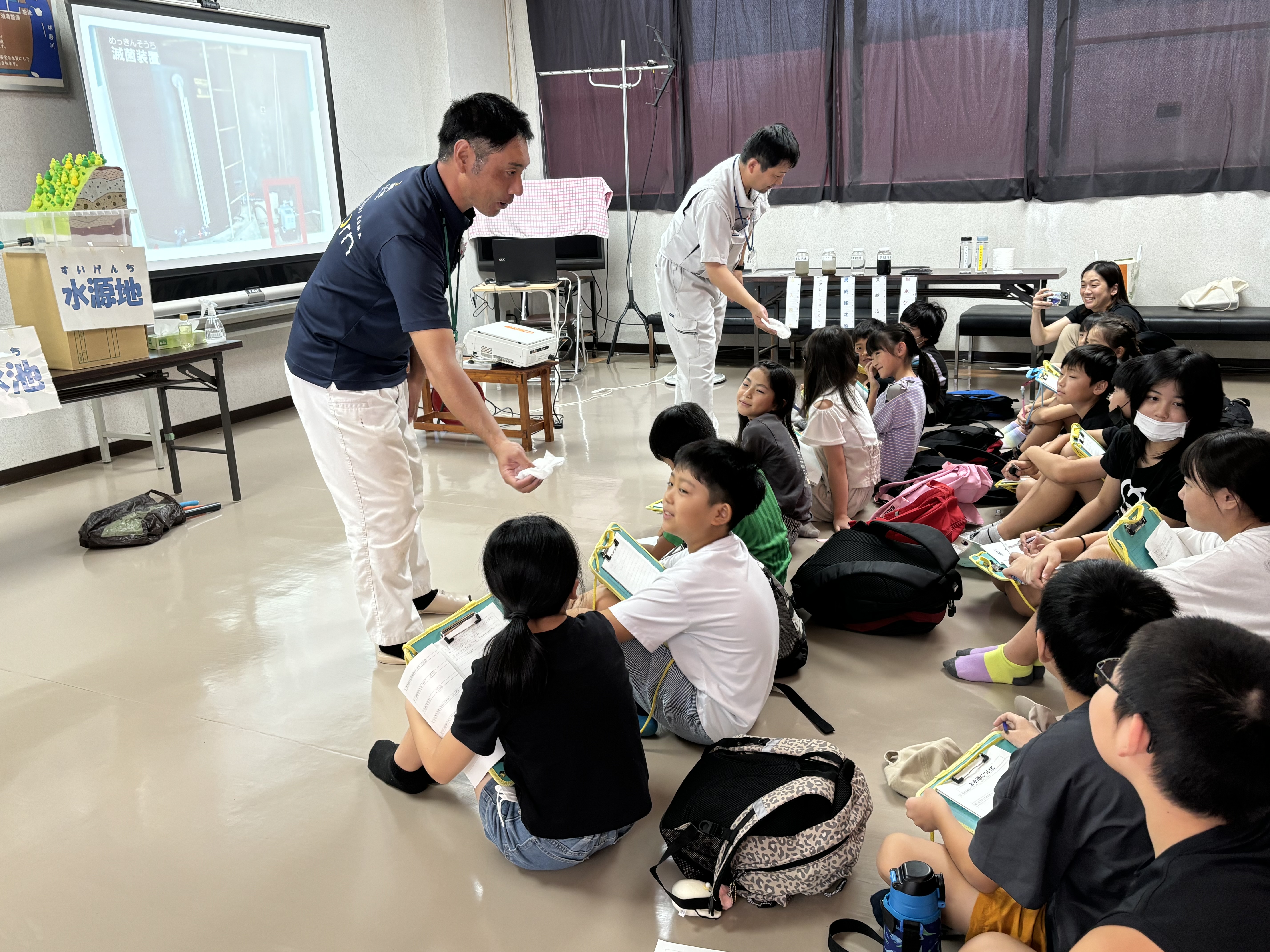 水源地から流れ出る水はとてもきれいで、消毒もほんの少しだけだということに驚いた子供達です。