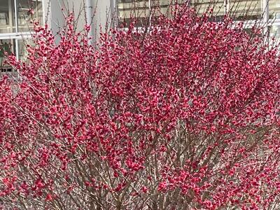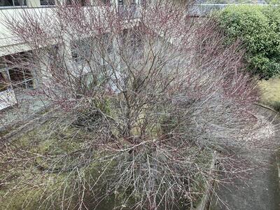 先日、紹介しました紅梅。小さな蕾をつけて春を待っていましたが・・・