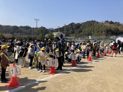 縦割り班ごとに町内をウォークラリーしながら進みます。