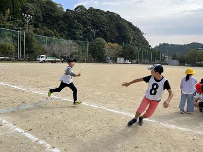 1年生から6年生へとバトンがつながれ、学年が上がるごとに力強い走りが見られました。