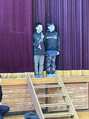 お別れ集会では、新運営委員会の司会のもと、楽しいクイズや6年生の発表がありました。