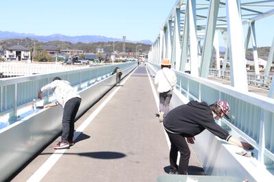 6年生が卒業するまでの期間に取り組むことを自分たちで決めて「卒業プロジェクト」として実践しています。その1つが学校や地域(西瀬橋)の清掃活動です。3月14日の午後に清掃に取り組みました。雑巾を使って欄干を拭いたり、箒で掃いたりしましたが、欄干を拭くための水を汲みに学校まで何往復もしなければならず、バケツに水を汲んで一輪車で運ぶなどして頑張っていました。それを見られた工事関係者の方もご協力してくださり、交流することもできて温かい雰囲気の卒業プロジェクトとなりました。
