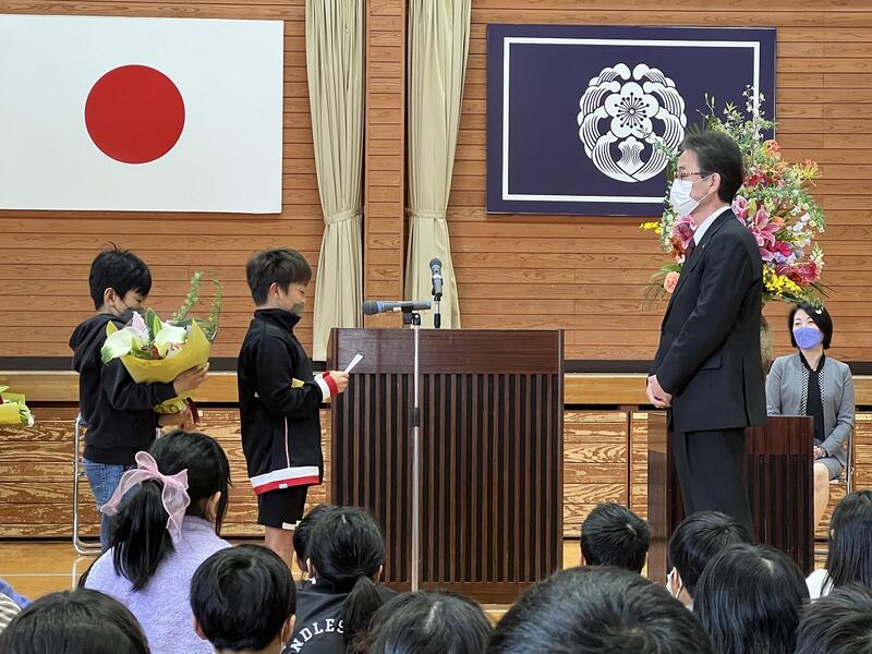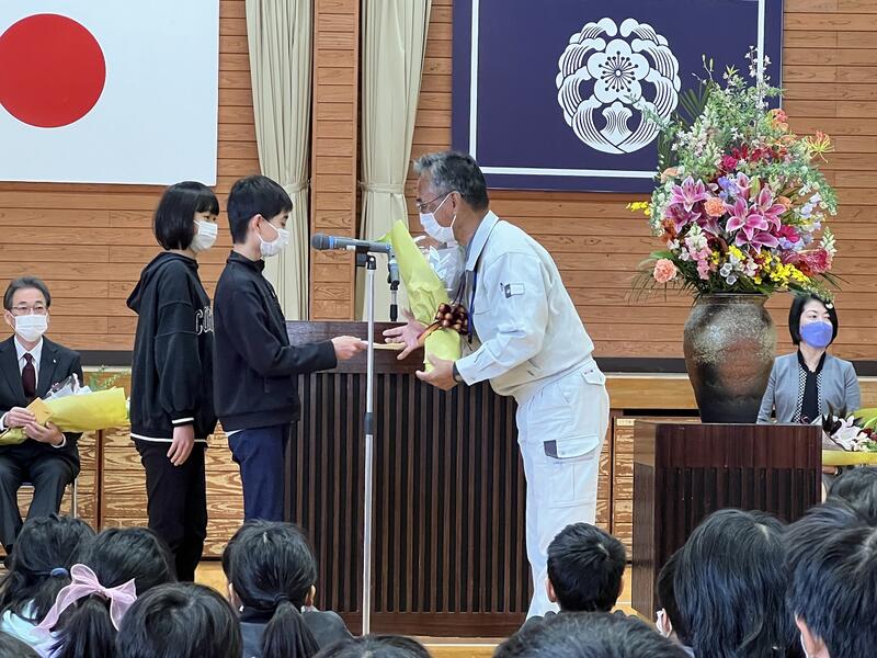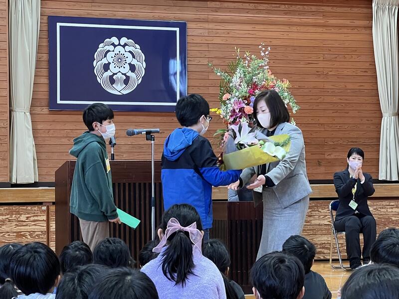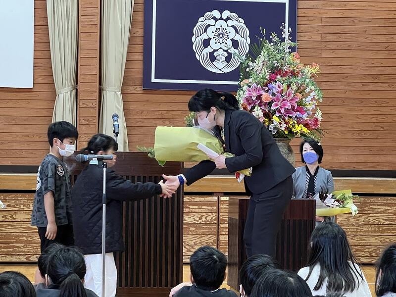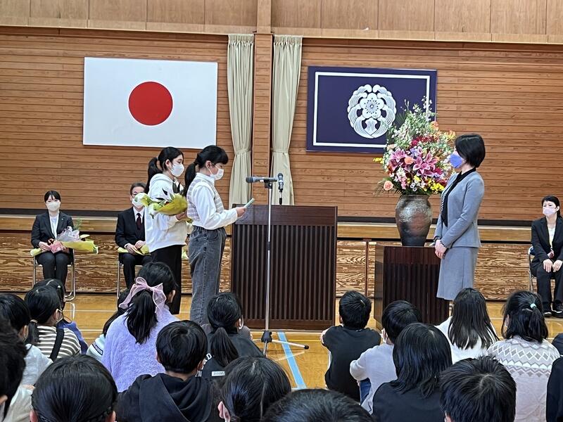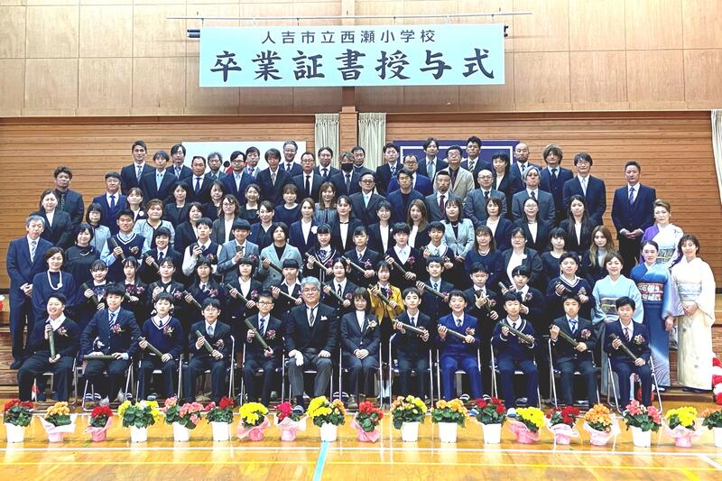 3月23日(木)あいにくの雨模様でしたが、人吉市市民部長様をはじめご来賓の方々のご臨席のもと、卒業証書授与式を挙行しました。式が始まるころは雨もやみ、静かな中で卒業式が始まりました。緊張の面持ちで卒業生31名が入場しました。一人一人に浅生校長先生から卒業証書が手渡され、堂々と壇上で胸を張っている子どもたちの姿が印象的でした。門出の詩はひな壇に整列し、先生方や在校生そして保護者へ感謝の言葉を伝えました。そして中学校への希望を胸に担任の松本先生に見送られながら体育館を後にしていきました。3年ぶりに来賓と在校生が参加できた卒業式でした。厳粛な中に温かさを感じる素敵な卒業式となりました。卒業生の未来に幸多からんことを願っています。
