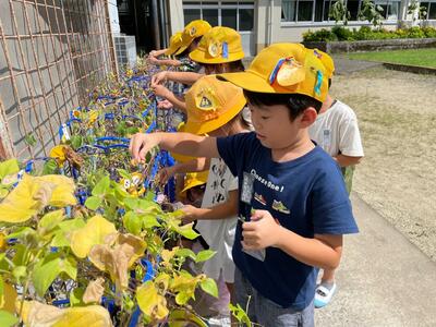 1年生が大事に育ててきたアサガオも花が終わってしまい、種取りの時期になりました。小さなアサガオの種を一粒ずつ大切にとっていました。この種はどうするのでしょう。楽しみですね。