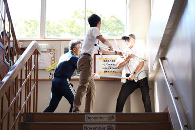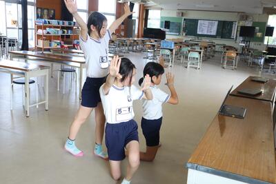 9月7日に不審者が侵入したという想定で避難訓練を実施しました。学校支援ボランティアの方に不審者役をしていただき、警察や警備会社とも協力して訓練を行いました。2年生教室付近で不審な人が入り込んだことを担任の先生が気づき、警報を鳴らしましたが、警報が鳴ってからは子どもたちは教室の中で机の下に隠れて不審者が確保されるまでじっとしていました。緊張感を持って訓練に参加できたようでした。このような事態にならないことが一番ですが、万が一の時に備えて訓練しておくことは重要だと感じました。
