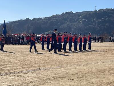 1月14日(日)にひとよししの消防出初式がありました。そこで、西瀬消防クラブの子どもたちが通常点検をうけました。松岡人吉市長から点検を受ける様子はきびきびとして、とてもかっこよかったです。