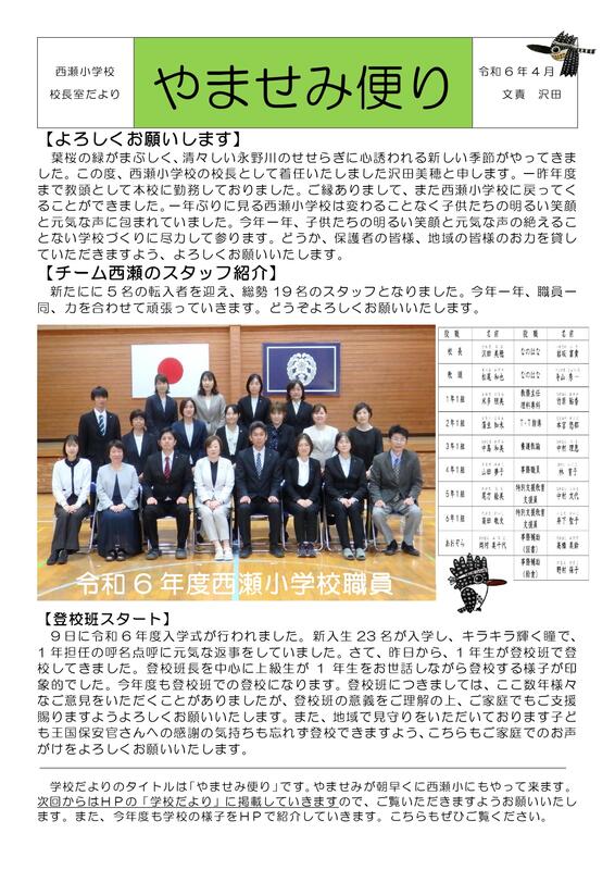 2024年4月の記事一覧 2024年4月 全ての記事 アーカイブ 2025年12月 (0) 2025年11月 (1) 2025年10月 (0) 2025年9月 (1) 2025年8月 (0) 2025年7月 (0) 2025年6月 (1) 2025年5月 (1) 2025年4月 (0) 2025年3月 (0) 2025年2月 (1) 2025年1月 (1) 2024年12月 (0) 2024年11月 (1) 2024年10月 (0) 2024年9月 (1) 2024年8月 (0) 2024年7月 (1) 2024年6月 (1) 2024年5月 (1) 2024年4月 (1) 2024年3月 (2) 2024年2月 (0) 2024年1月 (2) 2023年12月 (1) 2023年11月 (1) 2023年10月 (2) 2023年9月 (2) 2023年8月 (1) 2023年7月 (1) 2023年6月 (4) 2023年5月 (1) 2023年4月 (1) 2023年3月 (4) 2023年2月 (2) 2023年1月 (0) 2022年12月 (3) 2022年11月 (3) 2022年10月 (3) 2022年9月 (2) 2022年8月 (0) 2022年7月 (1) 2022年6月 (1) 2022年5月 (1) 2022年4月 (1) 5件 1件 5件 10件 20件 50件 100件 令和6年度 学校だより「やませみ便り」 投稿日時 : 2024/04/12 沢田美穂 「やませみ便り」№1