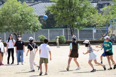 めっきり秋めいた気候になり、日差しは強いながらもさわやかな秋空が広がっています。そんな中、子どもたちは元気に外で体を動かして遊んでいます。ドッヂボールや鬼ごっこ、遊具を使った遊びなど、笑顔いっぱいの子どもたちです。一足早く、スポーツの秋を感じる一日でした。