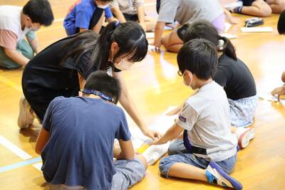 とはいうものの、紙飛行機をつくったこともない子どももいて、上級生は下級生に紙飛行機の折り方を教えたり、飛ばし方を教えたりしなければなりません。こういうかかわりを通して、よいリーダーシップやフォロワーシップが生まれてくるのだと思います。