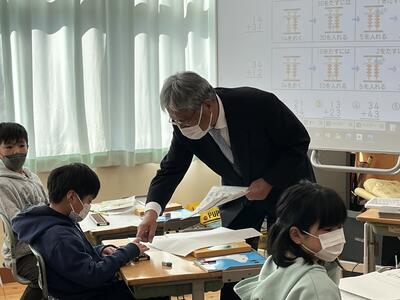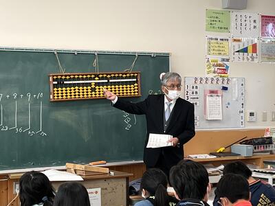 算数では、ボランティアの黒木様にお越しいただき、そろばん教えていただきました。