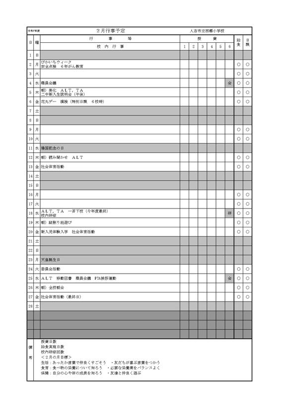令和7年度2月行事予定