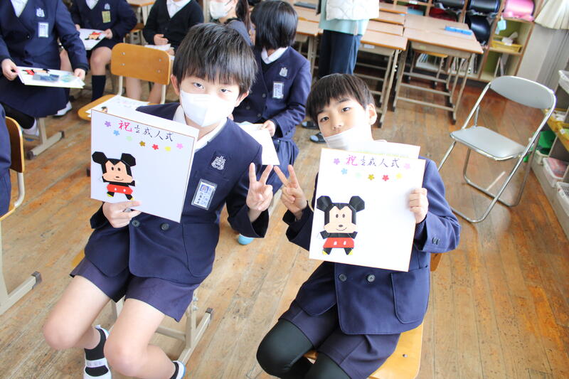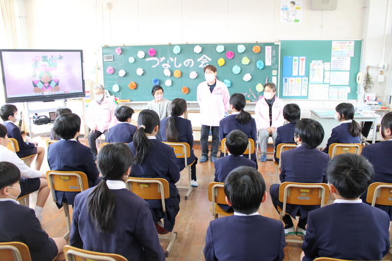 「つなしの会」は、年齢を数える際に「一つ、二つ…九つ」と付く「つ」が、10歳(とお)でなくなることから、10歳を迎える4年生の成長と自立を祝う行事です。更生保護女性会のご厚意により毎年「つなし」を祝っていただいております。手作りのお祝いの色紙を子供たち一人一人にいただきました。「つなしの会」を通して、成長の意味とともに地域の方々に見守られている喜びを感じたのびっ子たちでした 。記念色紙をいただきました。将来の夢を書き込み、自己実現への決意を新たにします。