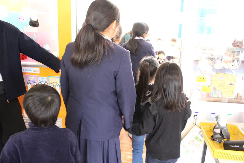 今日は1年生の学校探検がありました。ガイドは2年生です。説明文を準備して、詳しく説明してくれていました。1年生も大喜びでした。校長室にも訪問があり、とても賑やかな時間となりました。