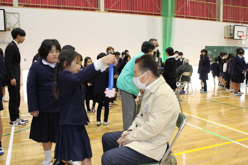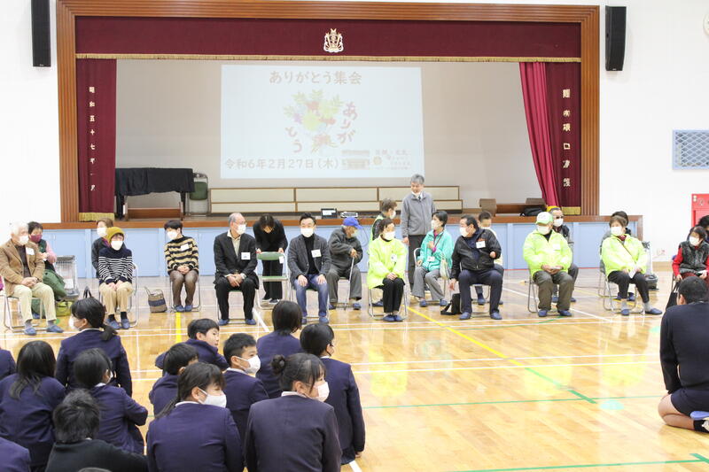 のびっ子会が企画した集会が開かれました。日頃お世話になっている地域の方々への感謝の気持ちを伝えながら、心をつなぐ「ありがとう集会」です。「命、心、学び、成長」に深く関わっていただいていることへの感謝とお礼の念を言葉と行動で表したのびっ子たちでした。「気づき・考え・行動する」力の高まりを感じました。