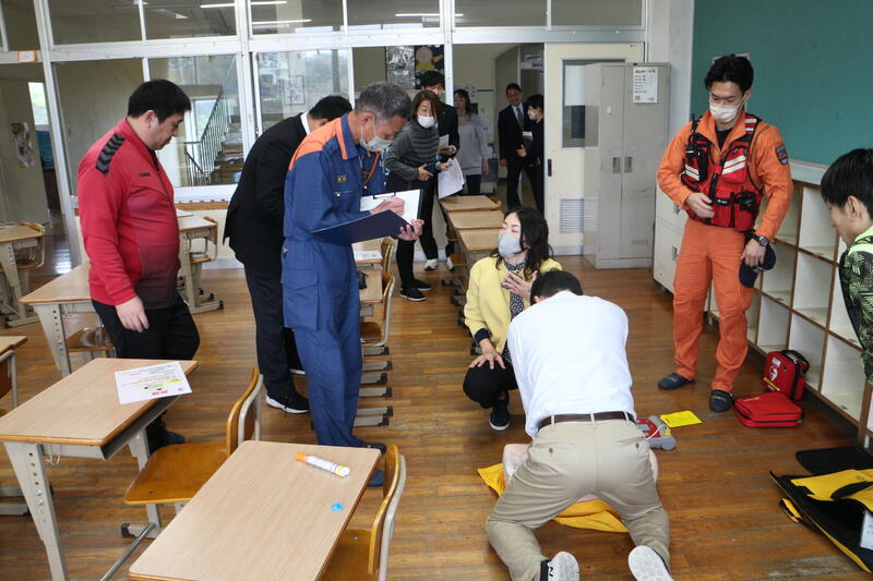 5,6年生が合同で保健学習に取り組みました。「救命」をテーマに心肺蘇生について学びました。北消防署の方々にご協力いただき、危機に際した時の行動を模擬行動として体験しました。あってはいけないことですが、なくてはならない行動です。人の生死に関わる場面を想定した究極の命の授業であったと感じました。