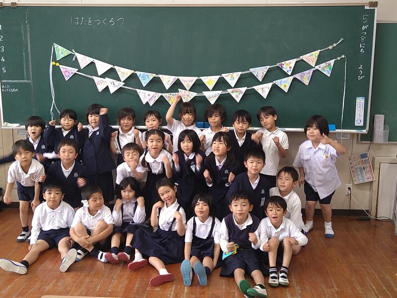 一年生が運動会の旗をつくりました。みんな初めての運動会に臨みます。やる気満々です。いよいよ、のびっ子が運動会へ向かってすすみます。