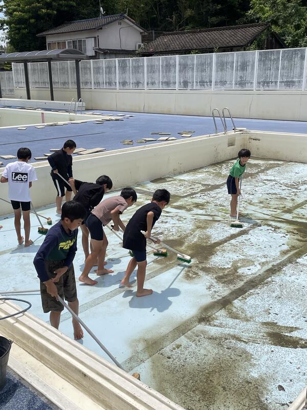 水泳学習の準備を行いました。二日間かけてプール掃除をしました。5、6年生が中心となってピカピカに磨き上げてくれました。今年はのびっ子全員で役割をもって取り組みました。「友情の水」を八代からいただいています。感謝の気持ちをもってプールでの学習に臨んでください。