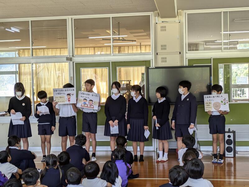 〔今日のメニューです〕〔給食委員会から〕給食の食べ方について呼びかけがありました
