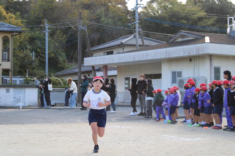 今日は、校内持久走大会を実施しました。1、2年生は1.2㎞(2000歩)、3.4年生は、2.3㎞(3000歩)5.6年生は、3.4㎞(3500歩)の自分への挑戦でした。応援する人たちも、気持ちを向け、声を向け、目を向けて、しっかりと温かい言葉をかけていました。また、保護者の方々、地域の方々からの応援から、それぞれの思いが届き、勇気と元気をいただきながら道のりを進み、完走したのびっ子たちでした。心と体もポッカポッカの、のびっ子たちでした。
