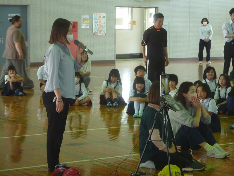 〔藤浦先生による食育指導 リモートで行いました〕〔山﨑先生による体育の授業 笑顔で、楽しく活動しました〕