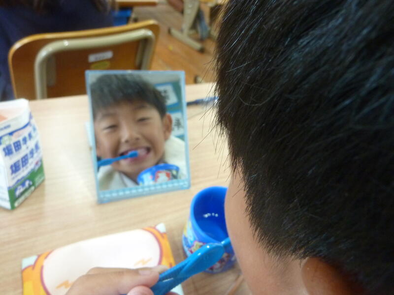 「歯と口の健康週間」の取組が始まっています。今日は「正しい歯の磨き方をしろう」の学習を4年生が行いました。効果的な歯磨きの方法を知る学習活動に続き、歯垢染め出しを行いながら実際に自分の歯磨きの仕方を確認した子供たちでした。本年度の健康目標として「むし歯ゼロ」を掲げています。達成に向けて5者で取り組んでいきたいと思います。取組の詳細については保健だよりを通してお伝えします。