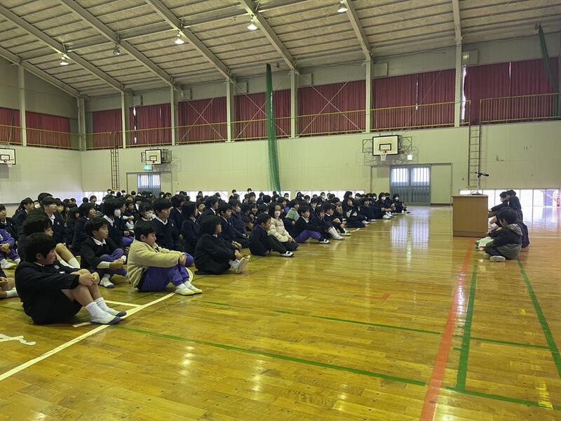 六年生が大矢野中学校へ体験入学に出かけました。集合場所の体育館では、他校の子ども達と混じり、はじめは緊張気味でしたが、交流活動を通して、互いに声を掛け合い、笑顔で接する姿がとても印象的でした。交流会の後は生徒会の皆さんから、学校生活についての紹介がありました。校長先生から「三学期は中学一年生の0学期」という言葉をいただいたのびっ子たちでした。将来の自分の姿を思い浮かべながら、少しの緊張と大きな期待・希望を抱きながら時間を過ごしたことでしょう。とても貴重な体験だったように感じます。もう、卒業の足音も聞こえだしたようです。