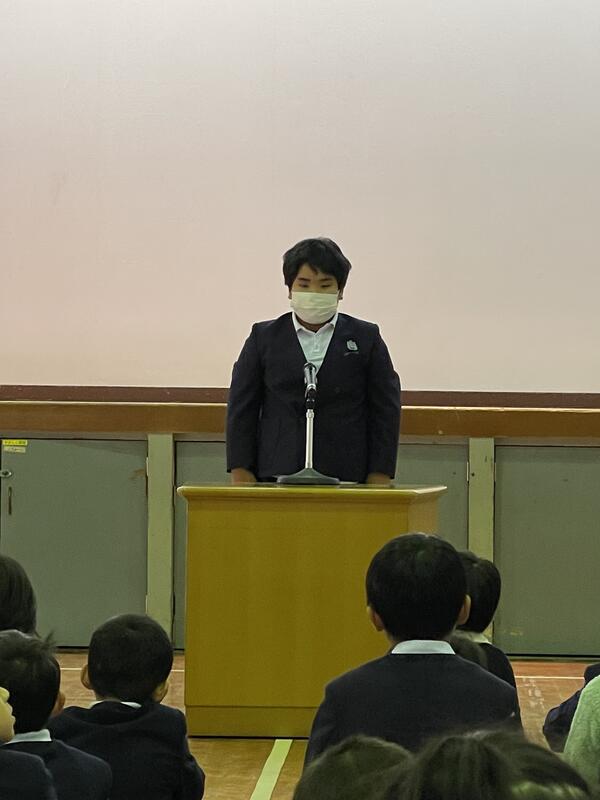 今日の児童集会では、給食記念週間についてコマーシャルがありました。給食の歴史を知ること、関わっていただいている方々への感謝の念を深める週間となるように、給食委員会のみなさんの活躍を願います。また、のびっ子会から「のびっこやさしさ配り大作戦」と題した能登半島地震への支援活動について呼びかけがありました。「自分たちにできること」への行動がのびっ子から立ち上がった活動です。思いが届き、平和な日常への復興への一助となることを願います。最後には、大谷翔平選手から贈呈されたグローブの紹介をしました。大谷選手の心遣いと子供たちへの期待をのびっ子全員で深く受け止めました。全員で大切に使わせていただきます。ご厚意に心より感謝申し上げます。