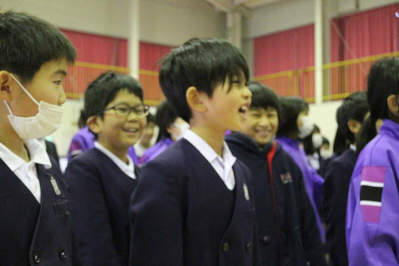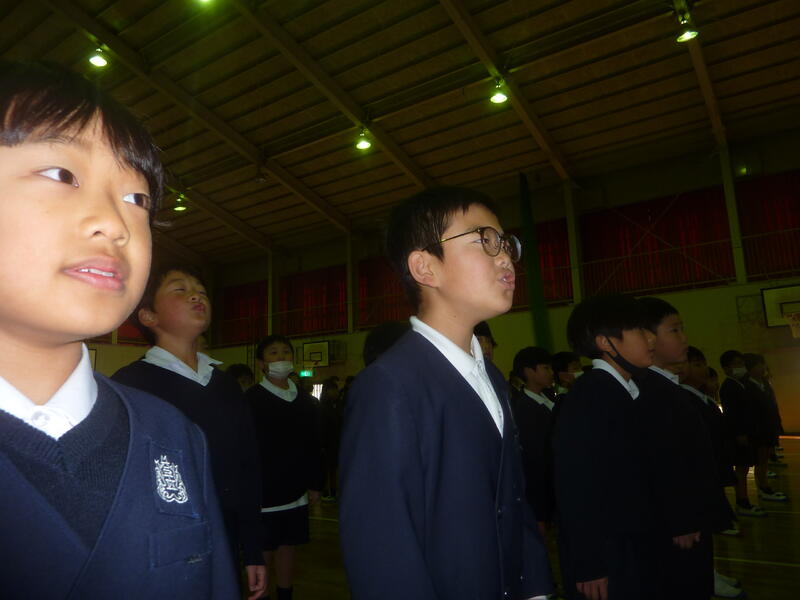 音楽集会を開きました。新春に響くのびっ子の歌声でした。冷え込んだ体育館は冷蔵庫のようでしたが、一人一人の歌声が重なり、熱気が生まれ、次第にポカポカとあたたかさを感じました。声の出し方、姿勢、声の合わせ方を学びながら「校歌」「君が代」を合唱したのびっ子たちでした。