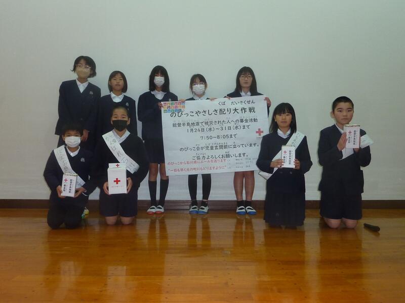 今日は、児童集会を開きました。のびっ子会が中心となっての月に一度の活動です。今回は環境委員会からペットボトルキャップ収集活動の成果について紹介がありました。その後はNBT(のびっこタイム)で、能登半島地震に係るのびっ子の行動について話し合い活動をしました。「優しさを配る」ことを視点に全員で、自分たちにできる「やさしさ」について考えました。心を使いながら、しっかりと考えを深めた時間となりました。