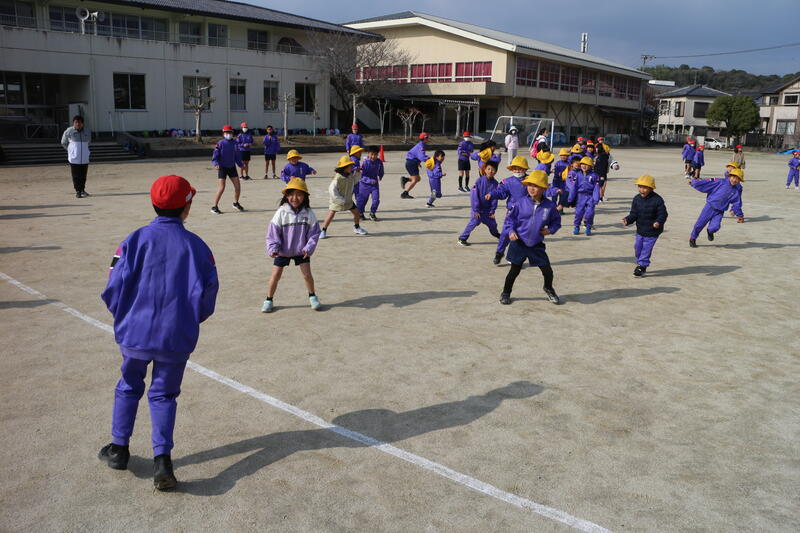 のびっ子は朝から元気いっぱいです。今朝は長縄に全員で取り組みました。縦割り班ごとに回数を競い合います。気温が低かったのですが、キラキラ輝く太陽と笑顔で、心も体もポカポカになりました。