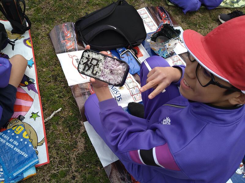 〇遠足スタートです。花海好公園へ縦割班で向かいます。〇公園到着後はおいしいお弁当をいただきました。