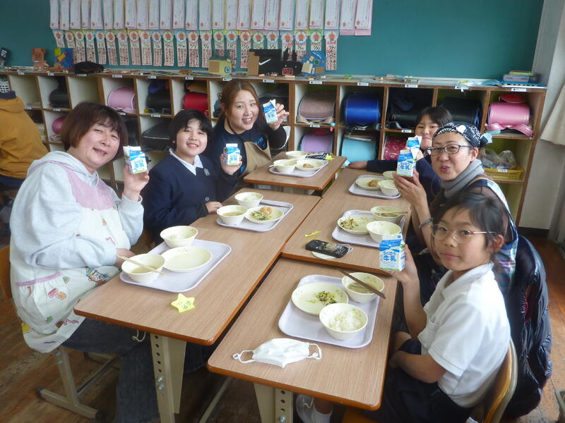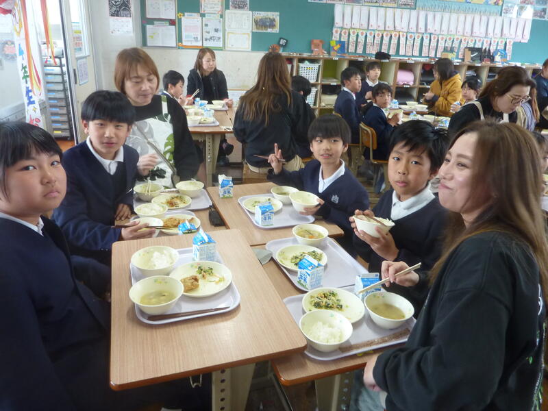 今日の給食は、保護者の方々と一緒にいただきました。給食試食会です。今回は1年生と5年生で実施しました。みんなニコニコでした。いつもおいしい給食が、より一層美味に感じたことでしょう。ご来校いただいた保護者の皆様、ありがとうございました。