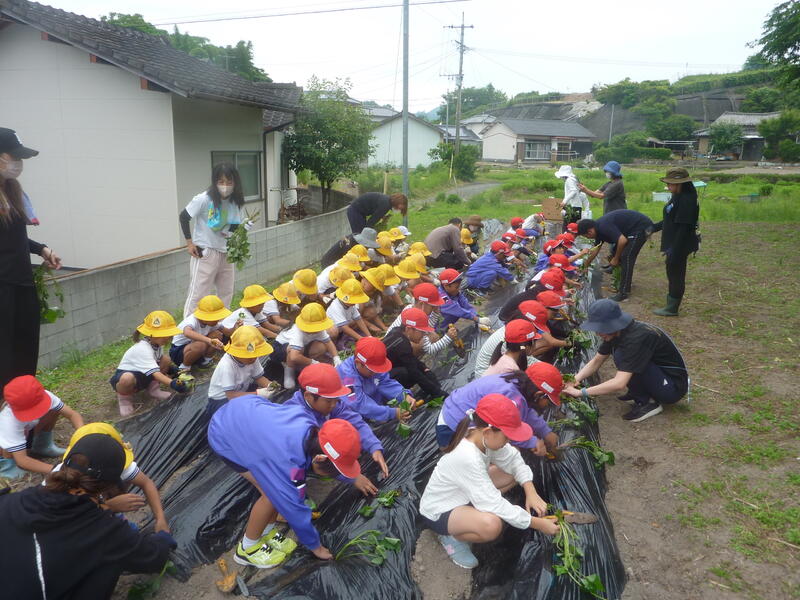 1年生、2年生が栽培活動に取り組みました。今日はおイモの苗植えを行いました。お家の方々にもお手伝いいただき、楽しく活動しました。生長、収穫が待ち遠しいです。しっかり育てていきましょう。