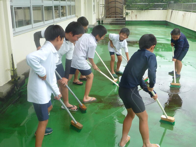 水泳学習の準備を行いました。二日間かけてプール掃除をしました。5、6年生が中心となってピカピカに磨き上げてくれました。今年はのびっ子全員で役割をもって取り組みました。「友情の水」を八代からいただいています。感謝の気持ちをもってプールでの学習に臨んでください。