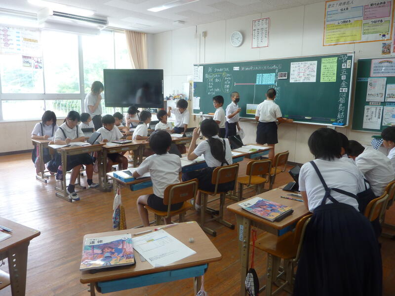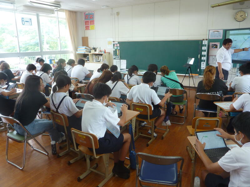 総合的な学習の時間の学びが広がっています。今日は地域の水質保全活動に取り組んでいらっしゃる山川さんにおいでいただき、校区の水環境について学びました。校区地図をもとに水質改善の方策を考える学習活動を行いました。水俣に学ぶ肥後っ子教室から身近な環境への問題意識がつながる機会となりました。