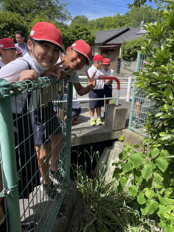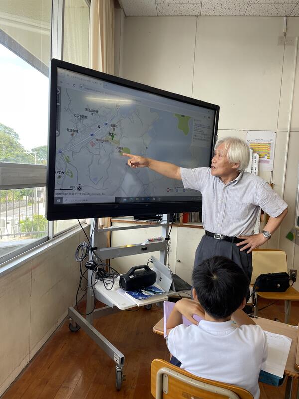 (講師の山川さん)(学校周辺の水環境を調べて回りました)