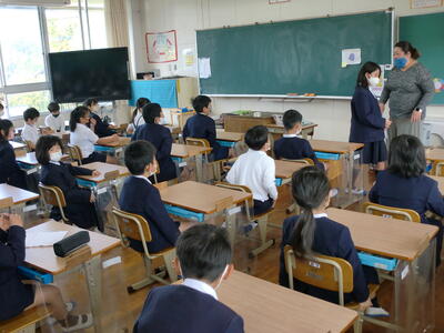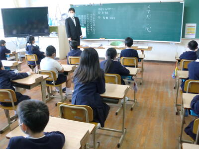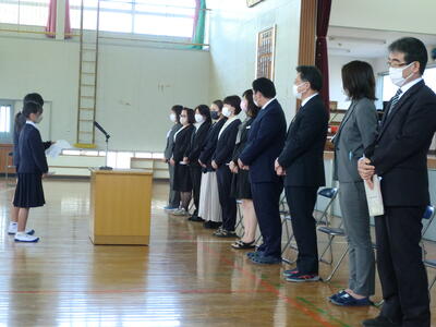 1人ずつ挨拶され、児童会代表から歓迎の言葉をもらいました。