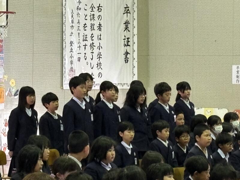 頼れる六年生が3月22日(金)に卒業式を迎えました。今年度は三十四人の巣立ちがありました。素直な心で、明るく、楽しい学校生活をいつも求めてきた子供たちでした。小学校生活は終わりますが、中学校での自分探しの三年間の中で、深い愛情を持って育てていただいた多くの方々に、感謝の心を持ちながら立派に成長することを願っています。つながりを求めて、多くの人と関わり、仲間を増やし、大切にできる人に成長してください。