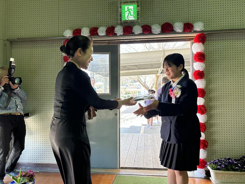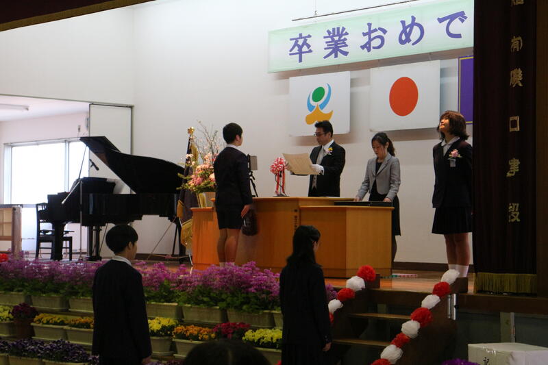 〔卒業証書授与〕〔一人ずつ保護者の方へ卒業証書を手渡しました〕