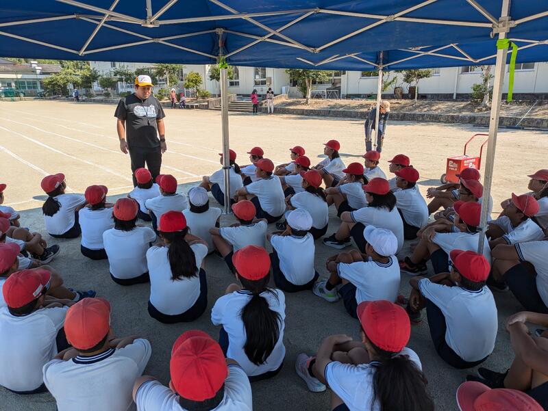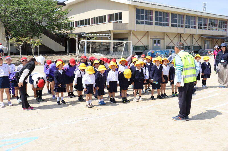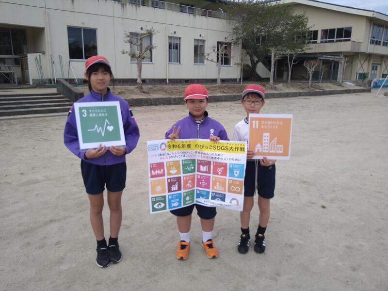 〔運動場に全員集合〕〔のびっ子SDGs大作戦も同時に進めました〕