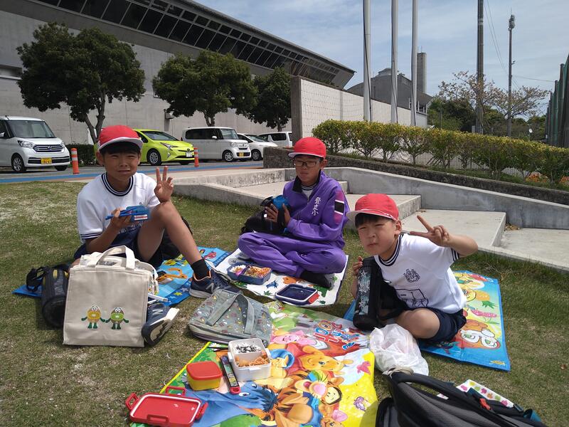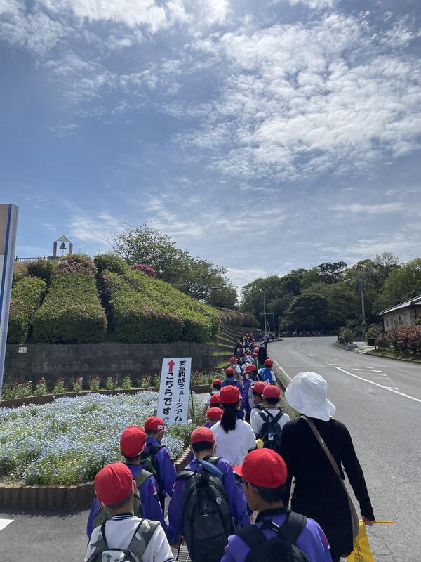 快晴の下、歓迎遠足を実施しました。167人のびっ子全員が片道4㎞、往復8㎞の道のりを歩き切りました。のびっ子全員で過ごした初めての活動でした。「のびっ子メモリー№1」として、心のアルバムに残す1日となりました。保護者の皆様、お弁当の準備、ありがとうございました。