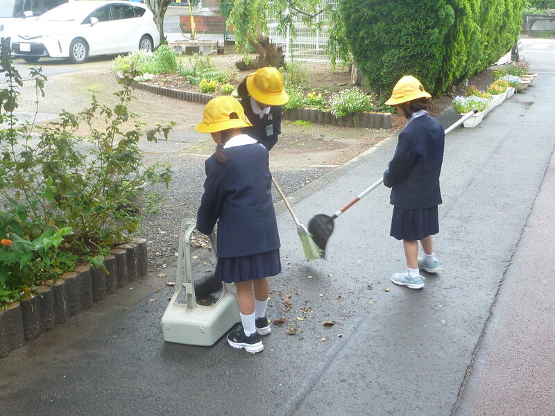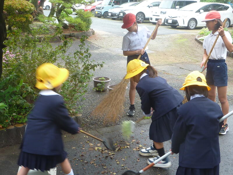 朝の活動に、今日は新しい顔が参加していました。いつも校内の清掃活動をしてくれている高学年に交じって、黄色い帽子の1年生が参加してくれていました。上手にほうきを使い落ち葉をかく姿は立派でした。上級生の姿を見習いながら、学校生活に慣れ親しんでいく1年生です。